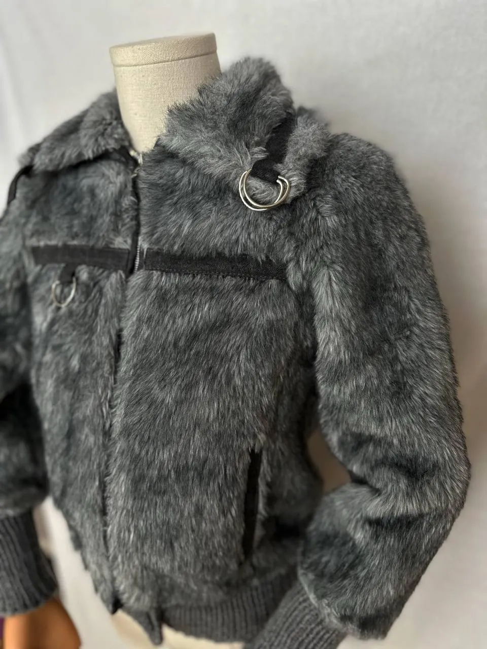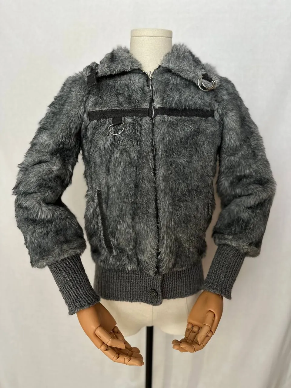 Афганская дубленка ONLY jeans из денима с подкладом, довольно редкий черный мех в отделке