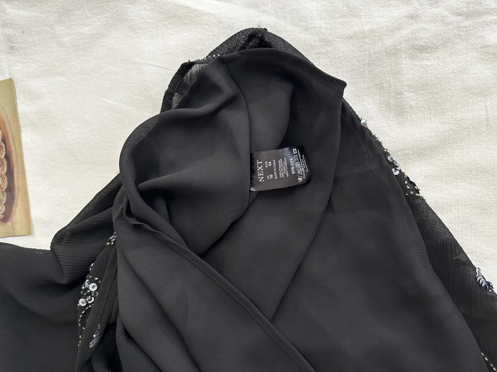 Очень красивый ворот и очень качественная ткань, завлекает и цвет, простой, тихий. Пояса к платью нет, завязала веревочками.
